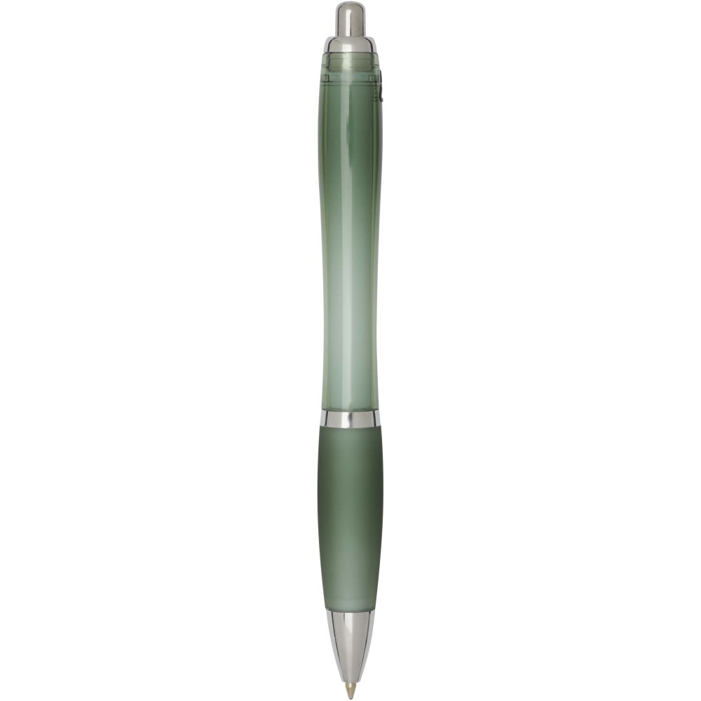 A Nash újrahasznosított műanyagból készült nyomógombos golyóstoll stílusos, ívelt kialakítású, áttetsző színes tolltesttel, ezüst díszítéssel és a tolltest színével megegyező, kényelmes írást biztosító puha fogórésszel rendelkezik. Az RCS tanúsítvánnyal rendelkező újrahasznosított ABS műanyagból készült termék segít csökkenteni a szűz alapanyagok felhasználását, miközben megőrzi tartósságát. A toll hátoldalán található rABS logó jelzi az újrahasznosított anyagösszetételt. Tinta színe: fekete. Tollhegy mérete: 1.0 mm. Íráshossz: 1000 méter.