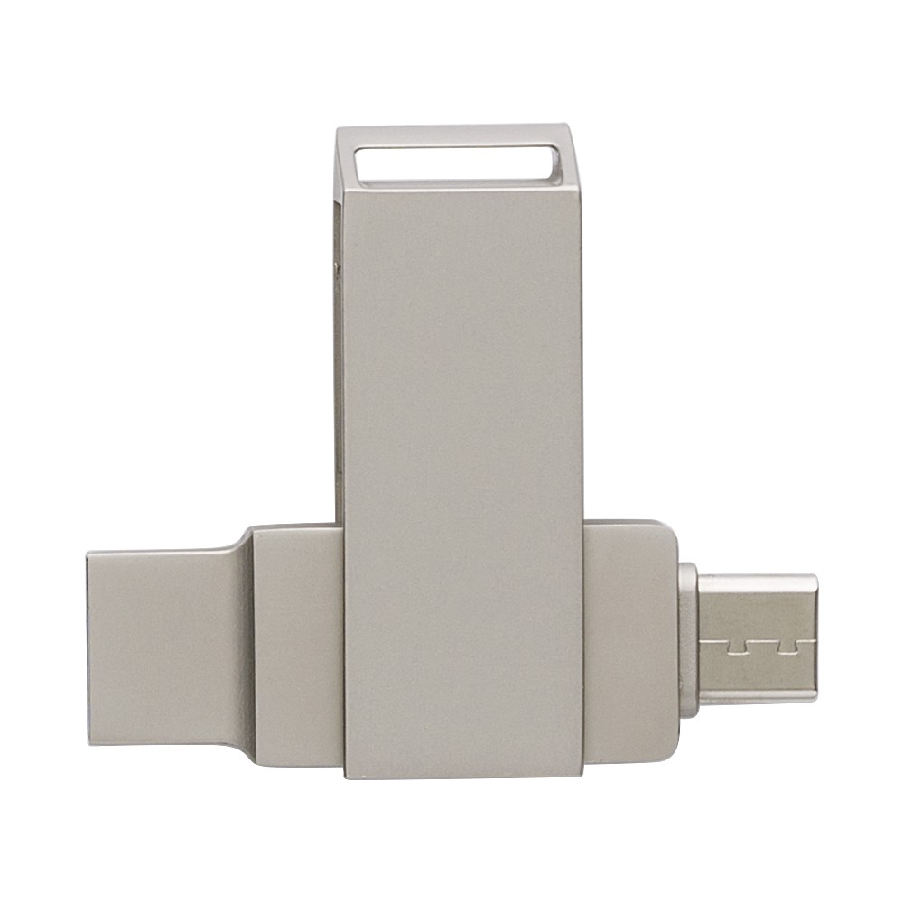 Pendrive 64 GB kapacitás, USB 3.0. USB-A és USB-C csatlakozóval. Csomagolása fém doboz. Emblémázás: Gravírozás, Tamponnyomás