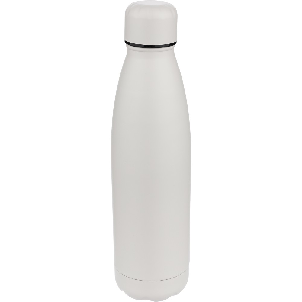 Újrahasznosított rozsdamentes acél ivópalack 500 ml-es űrtartalommal. Duplafalú szigetelés, amely akár 12 órán át melegen vagy hidegen tartja az italokat. A 304-es rozsdamentes acél belső kiváló tartósságot, rozsdaállóságot és biztonságos élelmiszer-érintkezést garantál. Selymes matt színű felülettel. A csavaros fedél és az aljzat színben egyezik a tiszta, egységes megjelenés érdekében. A palack elülső részén gravírozott újrahasznosított logó található. Egyenként, barna kartondobozba csomagolva.