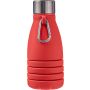 Összecsukható palack rozsdamentes acél fedéllel és alumínium karabinerrel. Összecsukott méret: d: 7x17 cm, kinyitott méret: d: 7x25 cm. Nincs egyenként csomagolva. Anyaga: szilikon. Űrtartalom: 550 ml. Emblémázás: Gravírozás