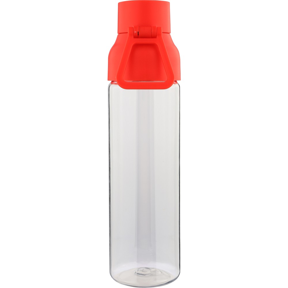 Tritán vizespalack 750 ml-es űrtartalommal, átlátszó palacktesttel és színes kupakkal. Tartós és könnyű anyagokból (PP) készült, amelyek ellenállnak a nedvességnek, a vegyszereknek és a mindennapi igénybevételnek. Mindennapi használatra tervezve; biztonságos nyomógombos zárral és felső hordozófogantyúval rendelkezik. Alkalmas munkához, iskolához vagy szabadtéri tevékenységekhez.