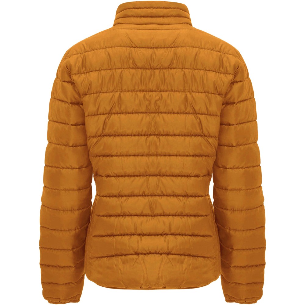 Női, karcsúsított, steppelt dzseki tollszerű tapintású töltettel, tasakkal. Fordított cipzárak, színben illeszkedő állvédővel és cipzárral. Két cipzáras elülső zseb. Gumis szegély a galléron, a kézelőn és az aljon. Kontrasztos színű bélés. Könnyű és összehajtható ruhadarab. Vízálló. Szélálló. 100% poliészter, 290 g/m2. Bélés és töltet: 100% poliészter. Emblémázás: Hímzés
