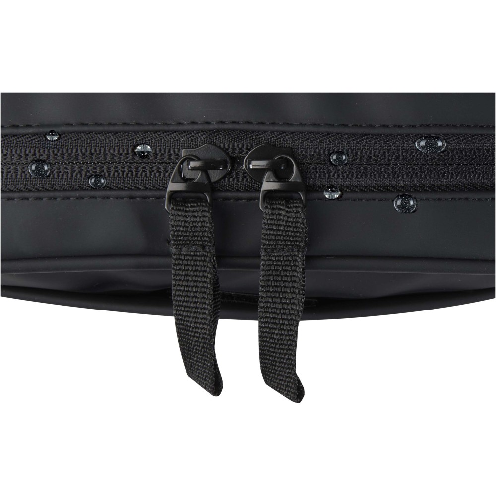 Ez az 1 literes technikai rendszerező táska GRS tanúsítvánnyal rendelkező, újrahasznosított PU-műbőrből készült, színben harmonizáló RPET béléssel, kifejezetten utazók, távmunkában dolgozók és a technikai kiegészítők kedvelői számára tervezve. A kompakt méretnek köszönhetően könnyen szállítható hátizsákban vagy kézipoggyászban, cipzáras főrekesze pedig olyan praktikus rendszerező funkciókat tartalmaz, mint a rugalmas tolltartó pánt, két hálós zseb a fülhallgatók és apró kiegészítők számára, egy megerősített elválasztó, valamint több rugalmas pánt a kábelek, USB-meghajtók és töltők biztonságos rögzítéséhez. A külső részen egy tépőzáras elülső zseb található a gyors hozzáférés érdekében, a kényelmes hordozást pedig egy hevederes fül segíti. A vízlepergető bevonattal ellátott termék hatékony védelmet nyújt az alapvető eszközök számára minden helyzetben.