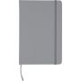 A5 méretű műbőr füzet parafa borítással, színes gumis záródással és könyvjelzővel. 80 db (80gsm) krémszínű lappal és zsebbel a hátsó, belső borítón. Csomagolás fekete dobozban. Emblémázás: Tamponnyomás, UV nyomtatás