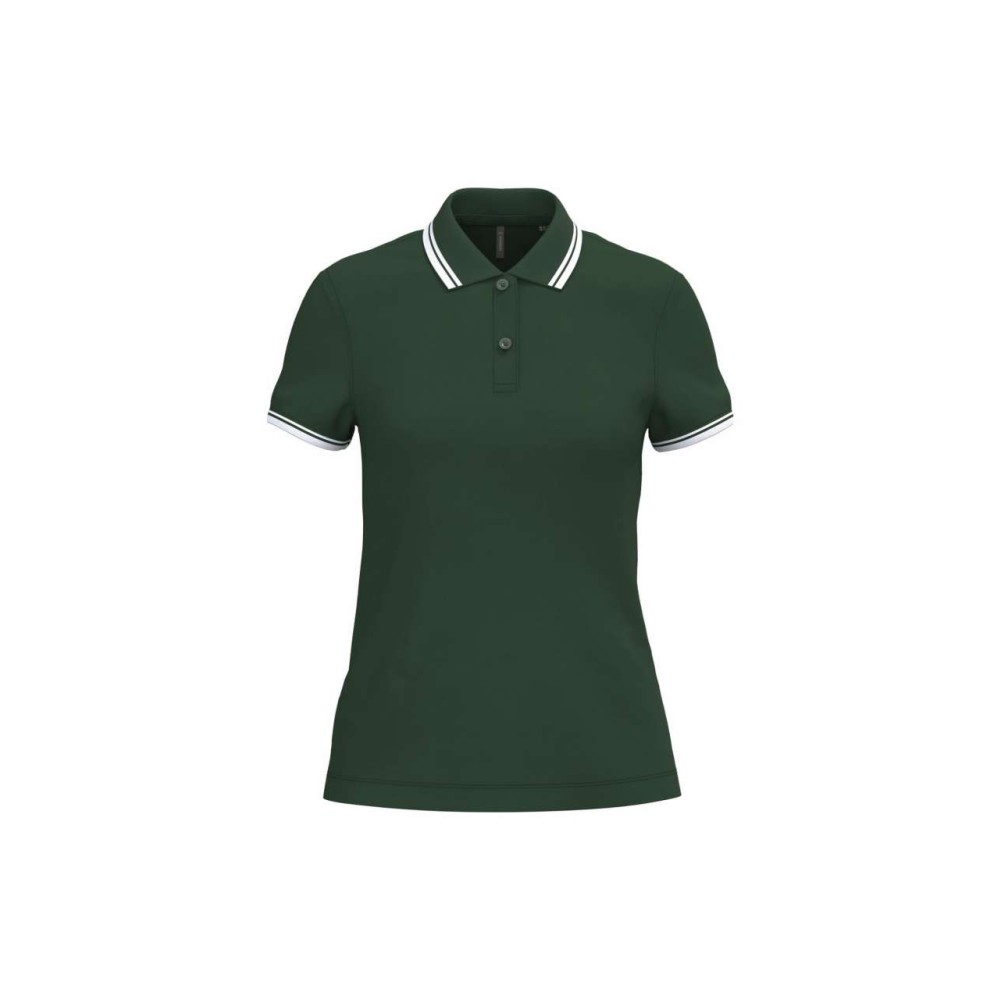 Kariban női rövidujjú galléros póló, Forest Green/White