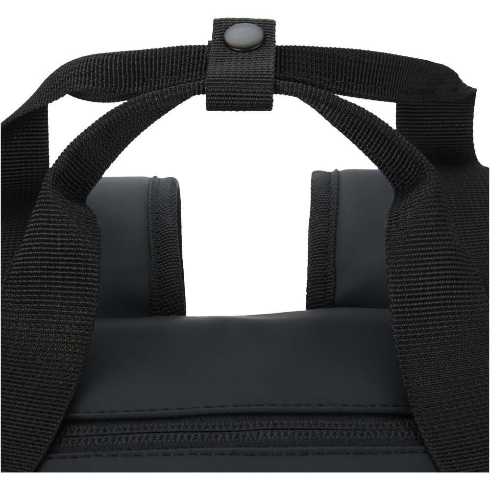 Ez a 18 literes hűtőhátizsák GRS tanúsítvánnyal rendelkező, újrahasznosított PU-műbőrből készült, színben harmonizáló RPET béléssel, így ideális választás szabadtéri programokhoz. A tágas főrekesz kiváló minőségű PEVA béléssel és vastag PE habszigeteléssel biztosítja az ételek és italok hűtését, míg a belső rugalmas pántok stabilan rögzítik a borospalackokat. A termék egy nagy méretű, párnázott elülső cipzáras zsebbel rendelkezik az extra védelem érdekében, az oldalsó nyitott zseb pedig gyors hozzáférést biztosít a kulacsokhoz. A kényelmes viseletről a légáteresztő hálós hátrész, valamint az állítható és párnázott vállpántok gondoskodnak, így praktikus kiegészítő piknikezéshez, strandoláshoz vagy kempingezéshez. Emblémázás: Szitanyomás