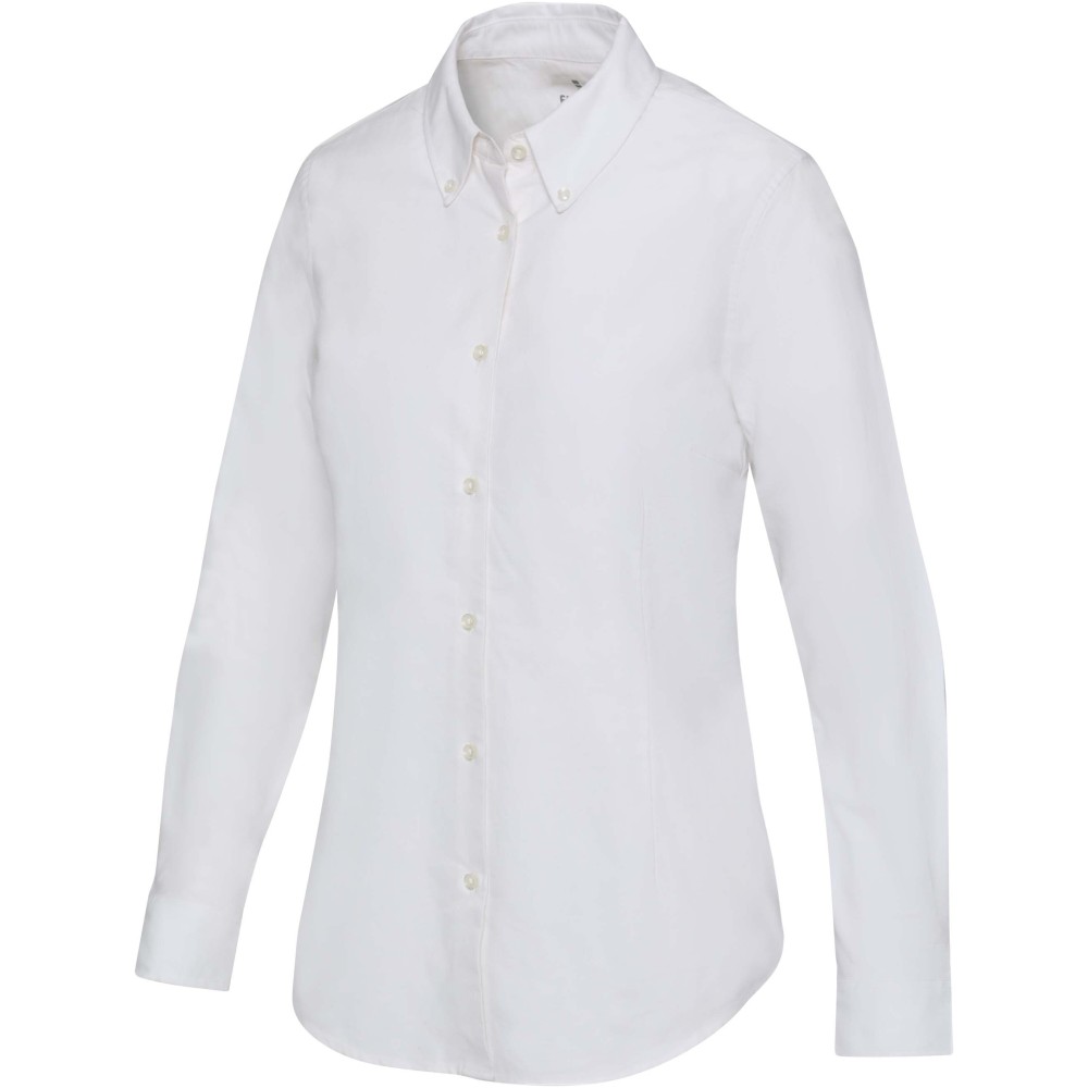 A Sphene hosszúujjú női oxford blúz időtálló dizájnt kínál, kifinomult nőiességgel. BCI-tanúsítvánnyal rendelkező pamutból készült, sima, kiváló minőségű tapintást biztosít, miközben támogatja a fenntarthatóbb pamuttermelést. A klasszikus oxford szövés finom textúrát és szerkezetet ad, kifinomult megjelenést teremtve, amely professzionális és alkalmi helyzetekben egyaránt jól működik. Normál fazonú, elöl és hátul formázó redőkkel, előnyös, kontúrozott sziluettet kínál. A gombos gallér teszi teljessé a dizájnt, így a Sphene egy sokoldalú alapdarab a ruhatárban. 100% BCI pamut oxford.