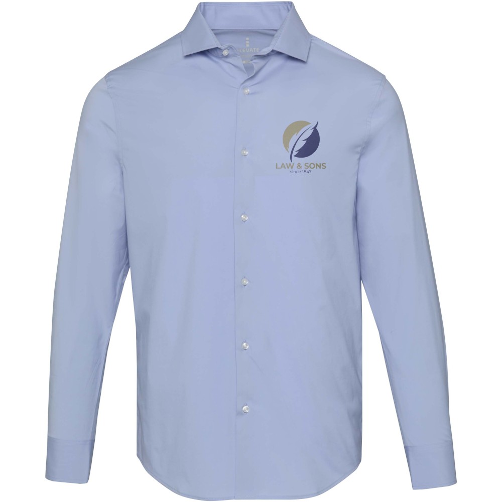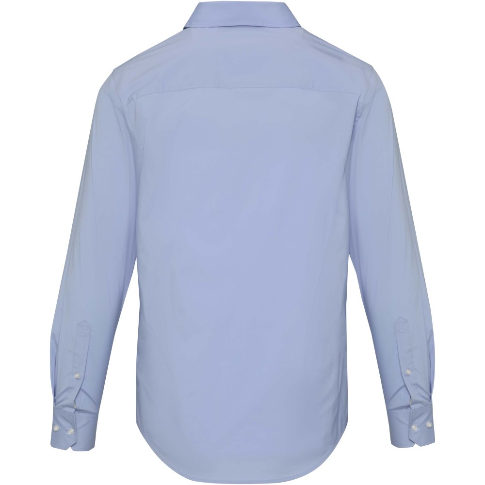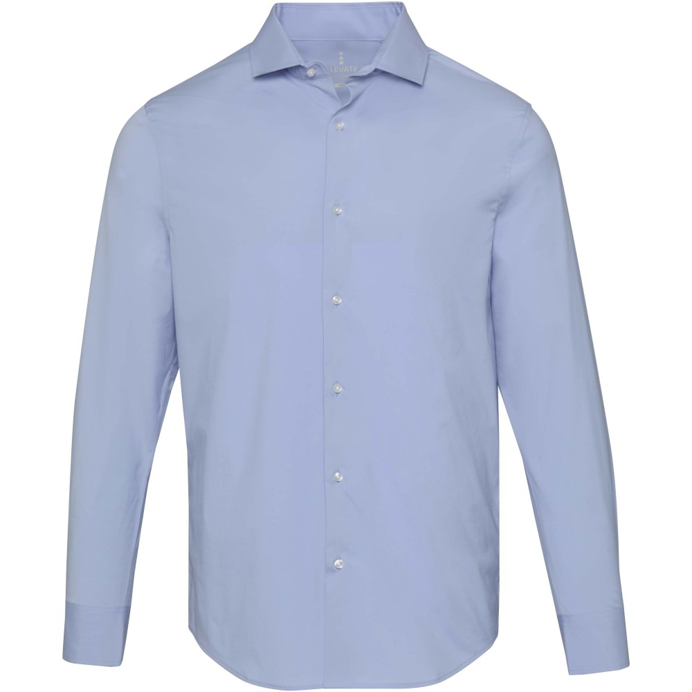 A Carnelian hosszúujjú férfi puplin ing modern kifinomultságot és fokozott kényelmet ötvöz. Kiváló minőségű, BCI-tanúsítvánnyal rendelkező pamutból készült, hozzáadott rugalmassággal, finom 30 denier kétrétegű sodrott szálszerkezettel, amely sima felületet, kivételes tartósságot és luxus érzetet biztosít. A könnyű puplin szövet friss, tiszta megjelenést kölcsönöz, míg a normál fazon mozgásszabadságot és egész napos kényelmet biztosít. Klasszikus, normál gallérral ellátott Carnelian ing sokoldalúan viselhető, mind üzleti, mind alkalmi viselethez. Puplin 97% BCI pamutból és 3% elasztánból, 133 g/m2. Emblémázás: Hímzés