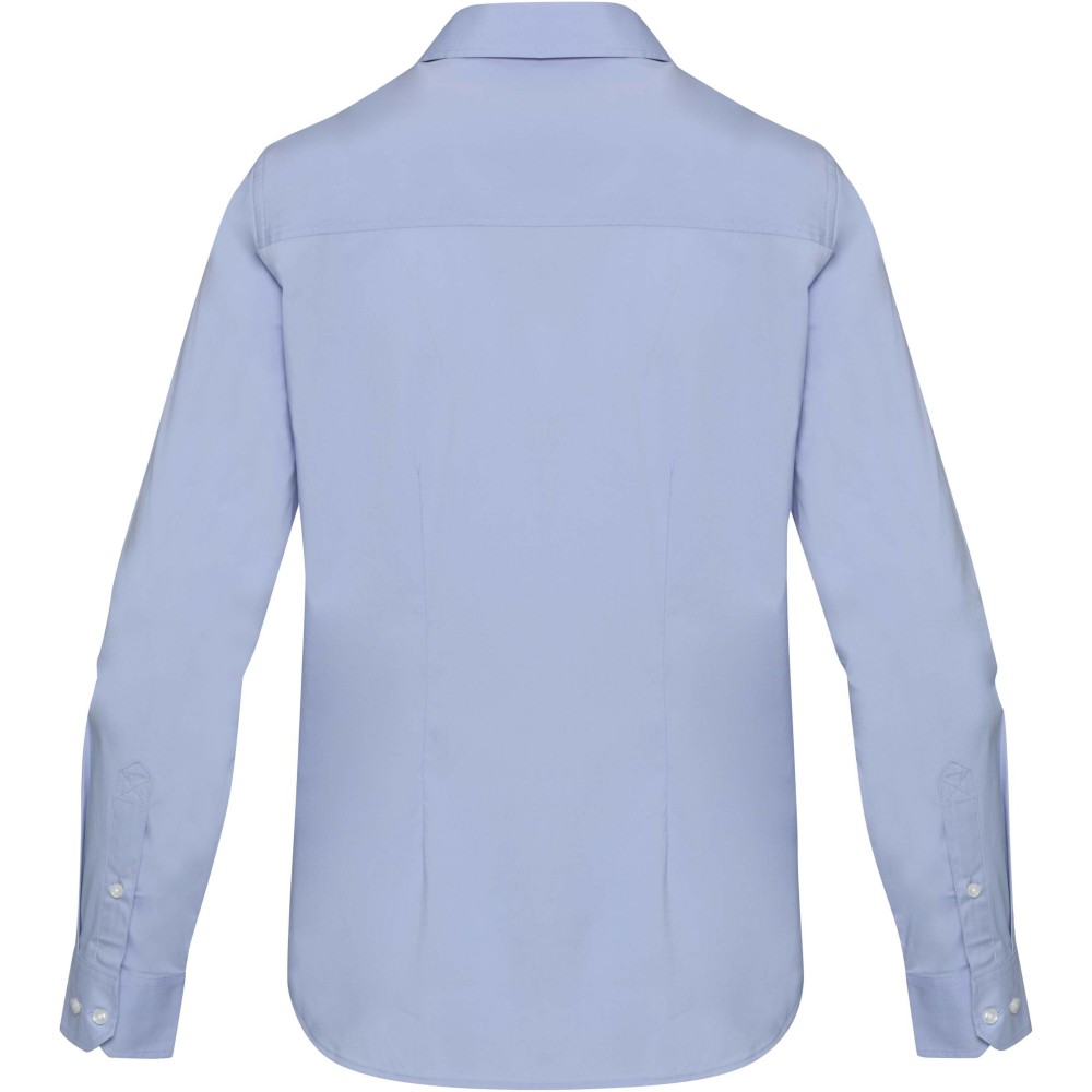 A Carnelian hosszúujjú női poplin ing letisztult stílust és rugalmas, nőies szabást kínál. Prémium, BCI minősítésű, rugalmas pamutból készült, finoman szőtt, 30 denieres, kétrétegű, csavart fonalszerkezete puha, kiváló minőségű kidolgozást és tartós formát biztosít. Normál szabással, elöl és hátul formázó bevarrással tervezték, így előnyös sziluettet és egész napos kényelmet kínál. Időtlen, normál gallérral készült, a Carnelian ing ötvözi az eleganciát és a teljesítményt, így kifinomult, alapvető darab a mindennapi viselethez. 3% elasztánból és 97% BCI pamutból készült puplin, 133 g/m2.