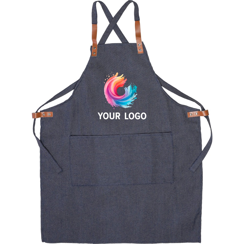 Farmerkötény vállpántokkal és két elülső zsebbel. A farmer 65% poliészterből és 35% pamutból készült. Ez a kötény nem rendelkezik nyakpánttal, csak vállpántokkal. A farmer színtartóssága 2-3 szint. Egyenként barna karton ajándékdobozba csomagolva. Anyaga: 280 g/m2. Emblémázás: Hímzés, Szitanyomás