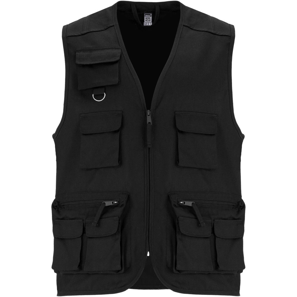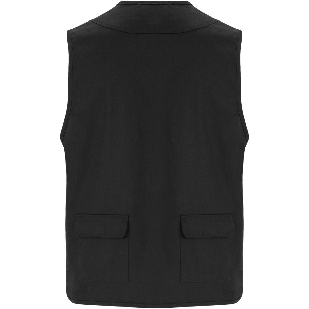 V-nyakú, többfunkciós zsebekkel ellátott munkamellény. Elülső cipzárja húzókával felszerelt. A mellrészen három zseb található, amelyek hajtókával és tépőzárral záródnak, a felső zseb pedig multifunkciós gyűrűvel kiegészített. Két cipzáras és húzókával ellátott oldalsó zsebbel rendelkezik, amelyeken két további, hajtókás és tépőzáras zseb helyezkedik el. A hátoldalon két hajtókás, tépőzáras zseb található. A nyakkivágás, a karkivágások és az derékrész díszítőszegéllyel van ellátva.