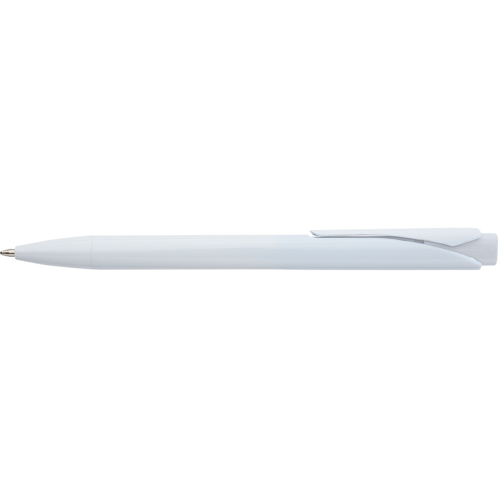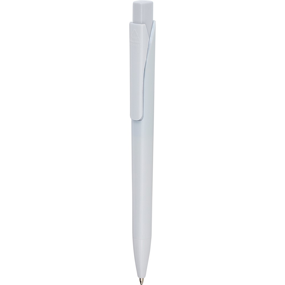 Golyóstoll tömör fehér tolltesttel és színes nyomógombbal. Újrahasznosított ABS-ből készült. Nyomógombos szerkezettel, klipsszel, valamint a nyomógomb tetején újrahasznosított ABS logóval rendelkezik. Kék színű, német Dokumental tollbetéttel, mely körülbelül 800 méter íráshosszt biztosít.