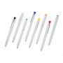 Golyóstoll tömör fehér tolltesttel és színes nyomógombbal. Újrahasznosított ABS-ből készült. Nyomógombos szerkezettel, klipsszel, valamint a nyomógomb tetején újrahasznosított ABS logóval rendelkezik. Kék színű, német Dokumental tollbetéttel, mely körülbelül 800 méter íráshosszt biztosít.
