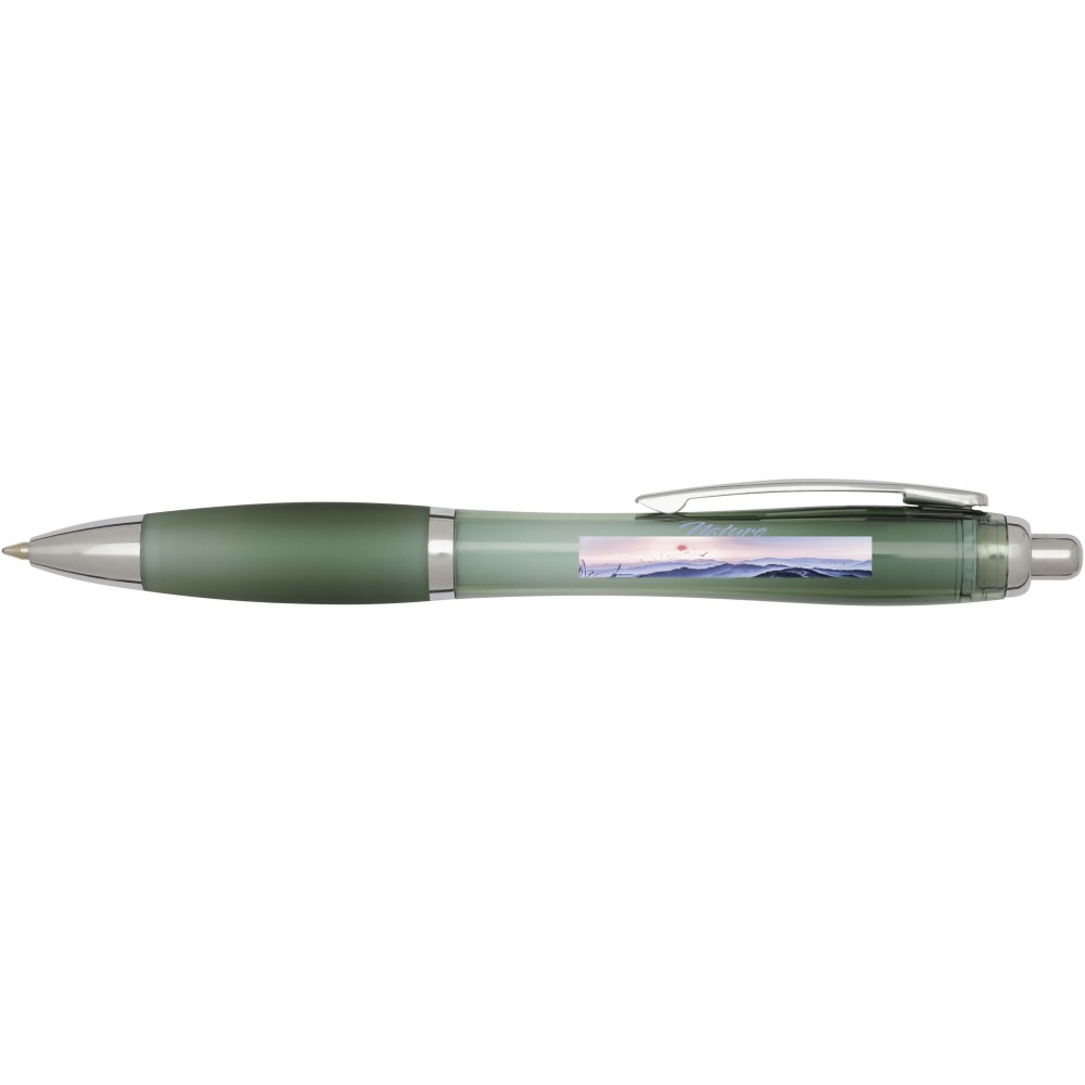 A Nash újrahasznosított műanyagból készült nyomógombos golyóstoll stílusos, ívelt kialakítású, áttetsző színes tolltesttel, ezüst díszítéssel és a tolltest színével megegyező, kényelmes írást biztosító puha fogórésszel rendelkezik. Az RCS tanúsítvánnyal rendelkező újrahasznosított ABS műanyagból készült termék segít csökkenteni a szűz alapanyagok felhasználását, miközben megőrzi tartósságát. A toll hátoldalán található rABS logó jelzi az újrahasznosított anyagösszetételt. Tinta színe: kék. Tollhegy mérete: 1.0 mm. Íráshossz: 1000 méter.