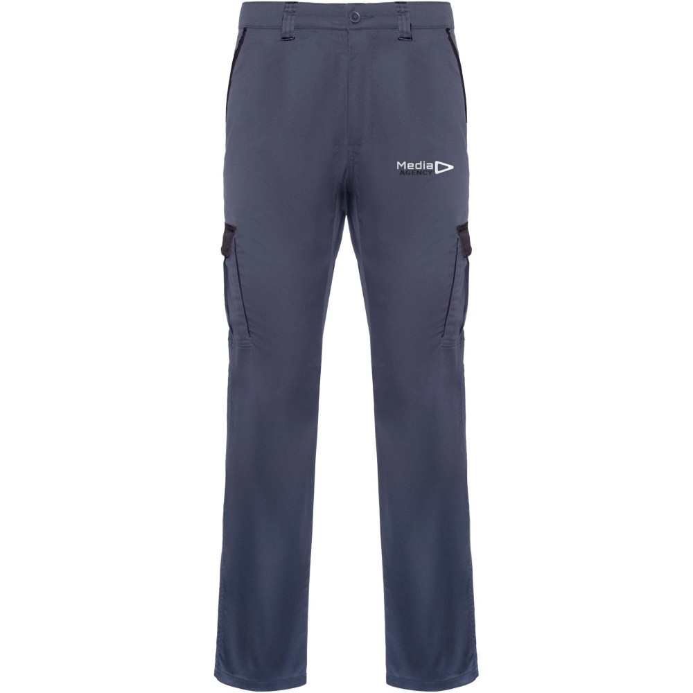 Hosszú szárú munkásnadrág, amely kényelmes és strapabíró anyagból készült. A nadrág hátul gumírozott derékkal rendelkezik az állíthatóság érdekében. Kontrasztos színű övbújtatókkal, zsebfedőkkel, hajtásokkal és szegélyekkel díszített. A praktikus kialakítást két elülső zseb, két tépőzáras fedéllel ellátott, hajtogatott oldalsó zseb, valamint két szintén tépőzáras fedéllel záródó hátsó zseb biztosítja.