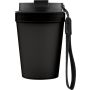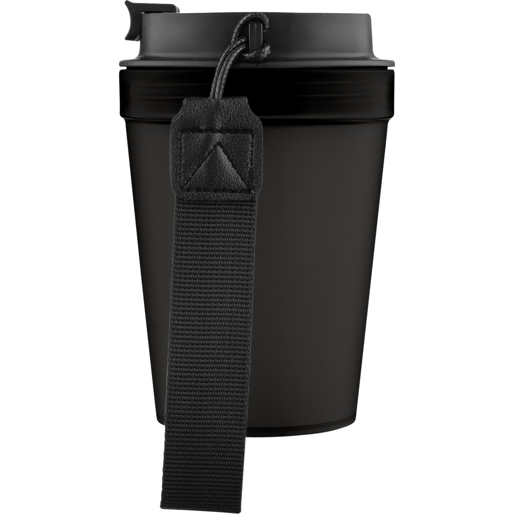Átlátszó, szimplafalú ivópohár 350 ml-es űrtartalommal, vastagfalú kialakítással. Csavaros fedéllel és poliészter csuklópánttal rendelkezik a könnyű hordozhatóság érdekében. Tartós, ütésálló, megbízható termék. Meleg italokhoz is alkalmas, de kérjük, vegye figyelembe, hogy az egyfalú szerkezet miatt hőátadás előfordulhat.