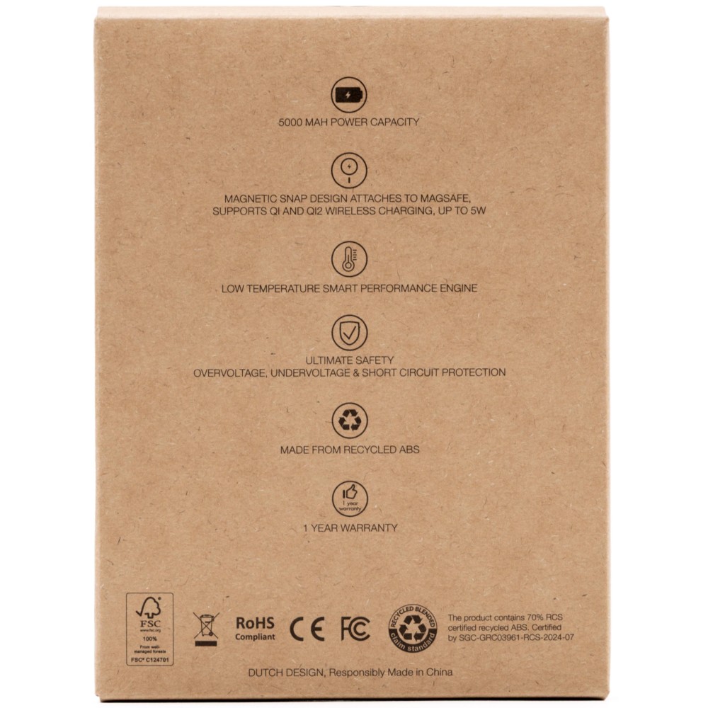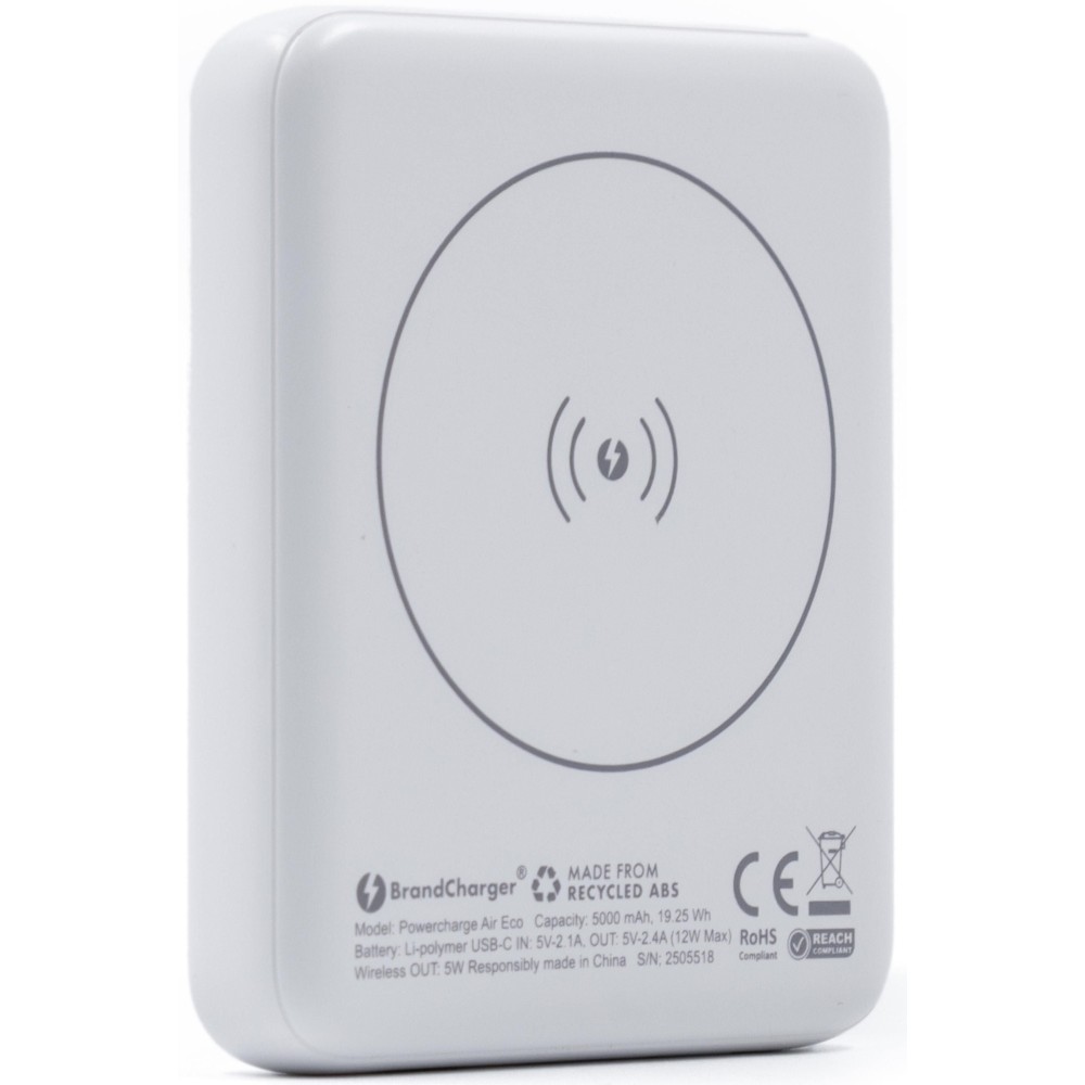 A Powercharge Air egy ultravékony, zsebméretű, mágneses, vezeték nélküli powerbank, amely újrahasznosított ABS anyagból készült. 5 000 mAh akkumulátorkapacitással rendelkezik, 5 W teljesítményű mágneses vezeték nélküli töltést támogat MagSafe, Qi1 és Qi2 szabványokkal kompatibilisen, valamint 12 W USB-C csatlakozón keresztüli vezetékes töltést biztosít. Beépített biztonsági chip védi túláram, túlmerítés, túltöltés, túlmelegedés és rövidzárlat ellen. LED visszajelzővel és intelligens teljesítményszabályozással rendelkezik. USB-C bemenet: 5 V. Vezeték nélküli kimenet: 5 W. Emblémázás: Tamponnyomás, UV nyomtatás