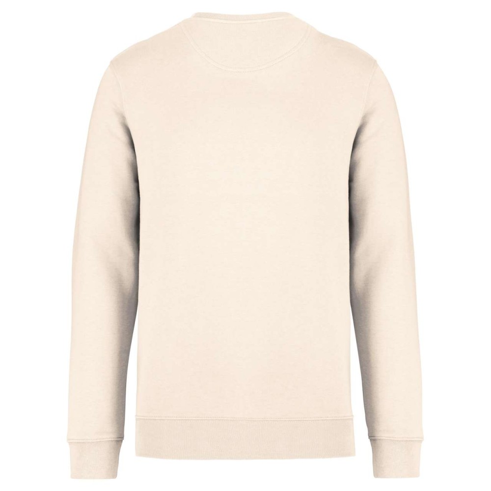 85 % bio, fésült pamutból és 15 % újrahasznosított poliészterből készült. Unisex. Egyenes szabás. LSF (Low Shrinkage Fleece: előzsugorított polár). Kerek nyakkivágás. Félhold alakú. Méretcímke organikus pamut és újrahasznosított poliészter logóval. 1x1 bordás nyakpasszé, alsó szegély és kézelő. Duplaöltés a kézelőn, karöltőben és kézelőn. Egyszeres felülvarrás a nyakkivágáson. Belső szalagozott nyakrész. A nyakrészen nincs márkajelzés, csak méretcímke a könnyebb dekorálás érdekében. A ruhadarabhoz kartonpapírból készült ismertetővel, amely felsorolja a felhasznált környezetbarát anyagokat. OEKO-TEX N CQ1007/7 STANDARD 100 tanúsítvánnyal rendelkezik. IFTH. 350 g/m2. Emblémázás: Hímzés, Szitanyomás