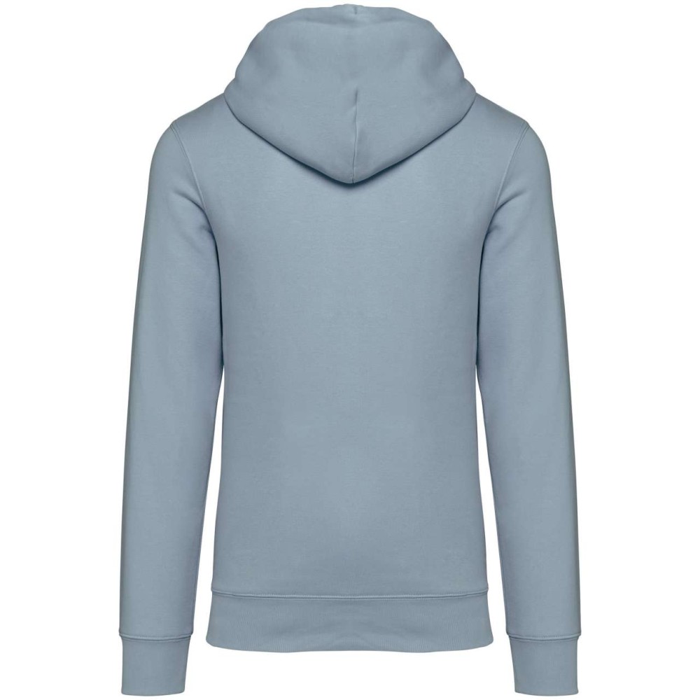85 % bio, fésült pamutból és 15 % újrahasznosított poliészterből készült. Unisex. Egyenes szabás. Méretcímke organikus pamut és újrahasznosított poliészter logóval. LSF (Low Shrinkage Fleece: előzsugorított polár) kezelés. Kapucni. 1x1 bordás szegély és kézelő. Duplatűzés a kézelőn, a szegélyen és a nyaknál. Szalagozott nyakbelső hátul. Bélelt kapucni, a nyaknyíláson nincs felülvarrás, csak egy megkötés, hogy a húzózsinór a felső részen maradjon. Kerek húzózsinór a kapucnin fém véggel. Kenguru zseb. Nincs márkajelzés a nyakrészen, csak egy méretcímke a könnyű dekorálás érdekében. Karton függőcímkével érkezik, amely felsorolja a termék előállításához felhasznált környezetbarát anyagokat. Organikus pamutfonal. OEKO-TEX N CQ1007/7 STANDARD 100 tanúsítvánnyal rendelkezik. IFTH. 350 g/m2. Emblémázás: Hímzés, Szitanyomás