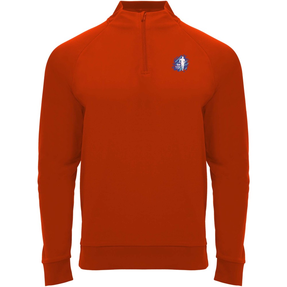 Technikai anyag. Raglán ujjak. Belül bolyhos anyag. Negyedcipzár azonos színű megerősített, fedett öltésekkel. Bordázott nyak-, ujj- és aljpasszé. Eltávolítható címke. Emblémázás: Hímzés, Szitanyomás