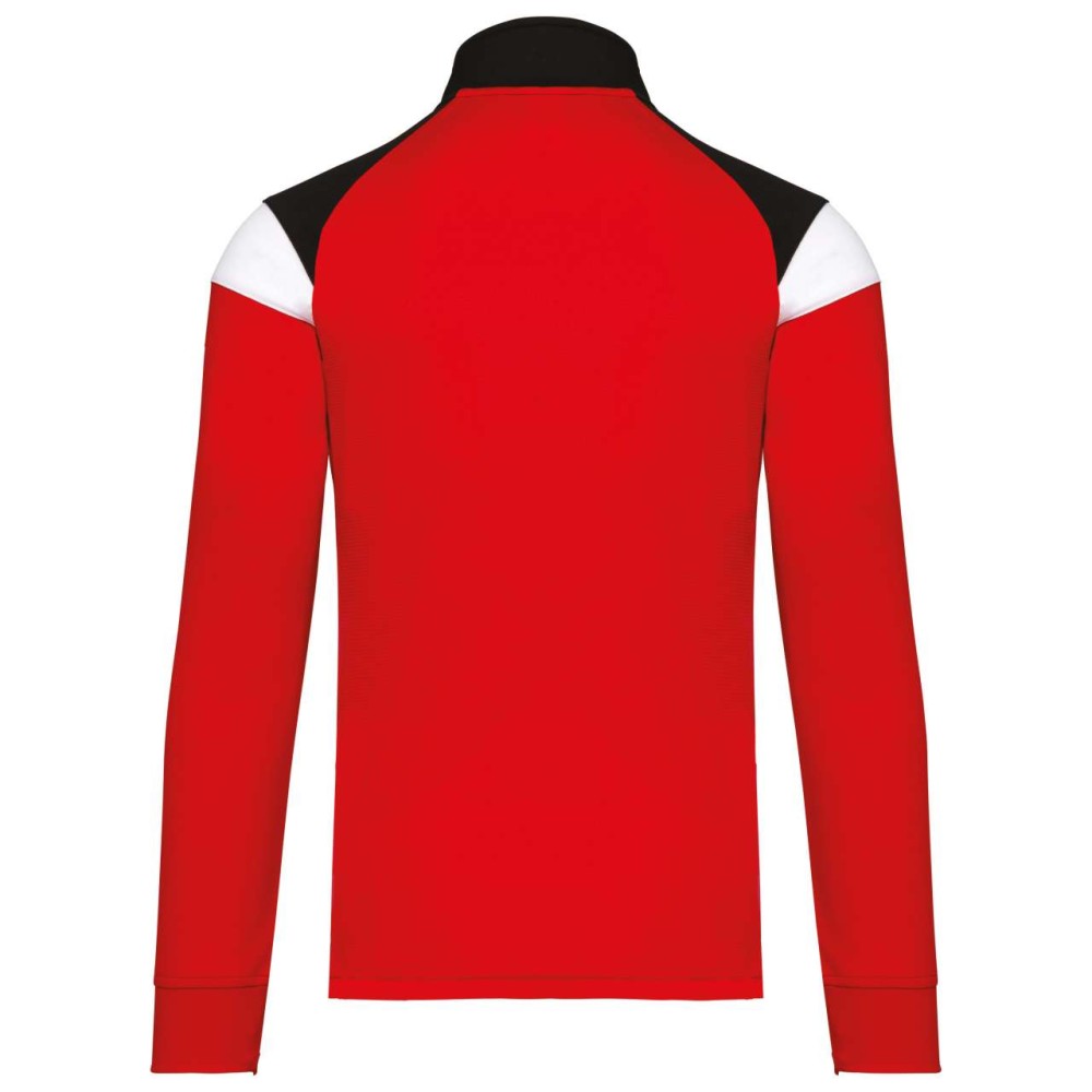Anyaga: 100% matt poliészter interlock. Egyenes szabás. Elöl fordított cipzáras záródás színazonos nejlonból. Raglán ujjak kontrasztos vállbetétekkel. Kontrasztos mell- és vállkialakítás. Két cipzáras elülső zseb. Texturált anyagbetétek az oldalakon és a hátrészen. Cipzárfedő a felső nyakkivágásnál a nagyobb kényelem érdekében. Könnyen eltávolítható márkajelzés a dekorációhoz. Emblémázás: Hímzés, Szitanyomás
