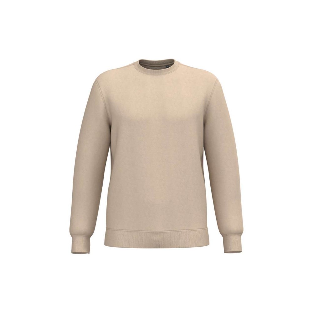 280 g/m2, 50% gyűrött pamut/50% újrahasznosított poliészter. Csiszolt polár anyag, egyenes szabás, környakas fazon. Vágott és varrott, 1x1 bordás, csőszerű összeállítás a nyakvonal, a mandzsetták és az alsó szegély jobb kiviteléért. Tónusban megegyező jersey szalag a nyakvonal belsejében. Nincs márkajelzés a nyakvonalon, csak méretcímke a könnyű dekorálás érdekében. Emblémázás: Hímzés, Szitanyomás