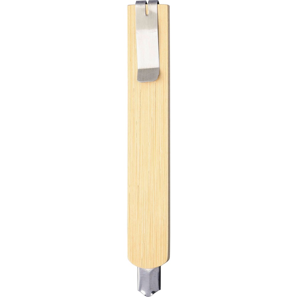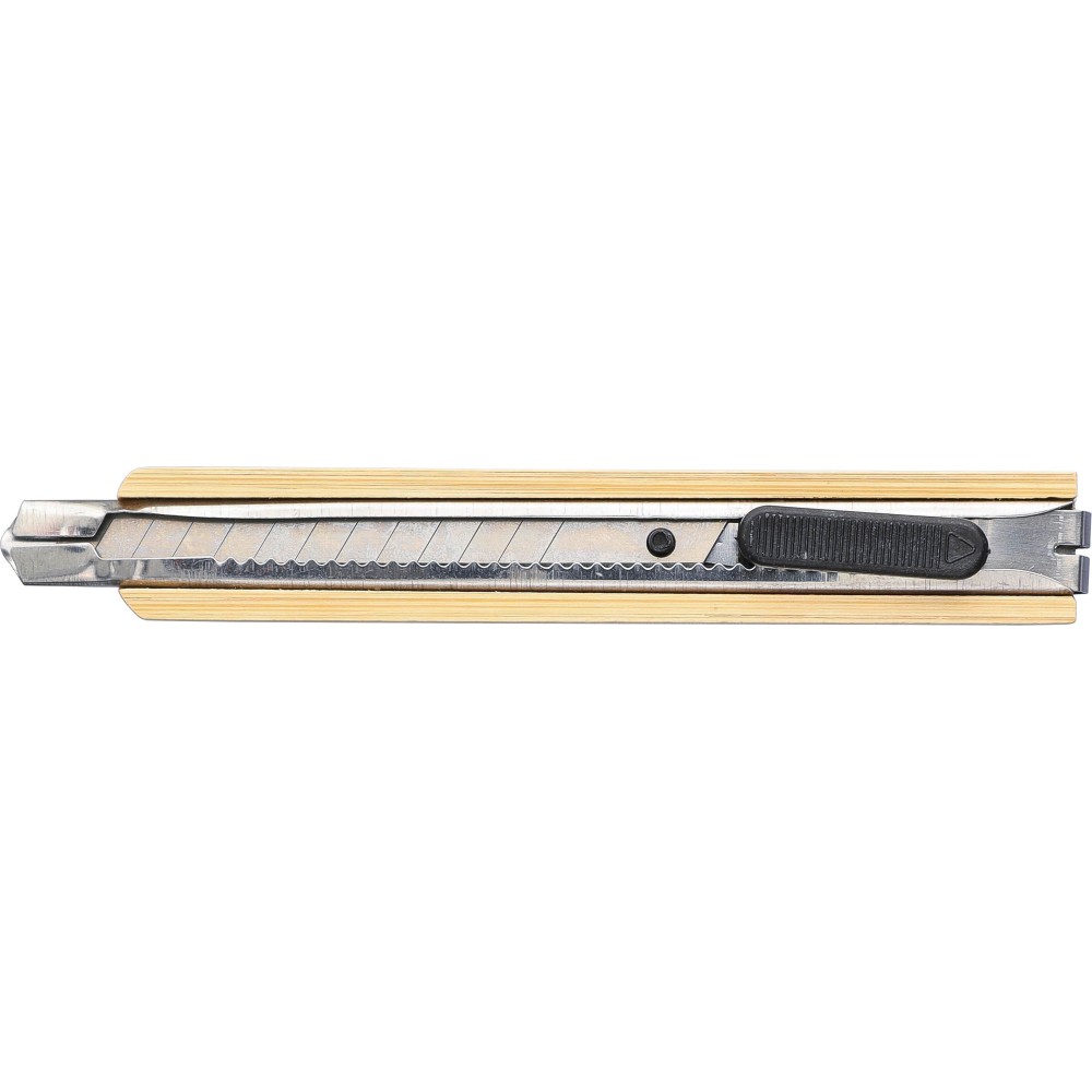 Sniccer bambusz testtel. A hátoldalán fém klip található, amellyel a vágóél rögzíthető, amikor nincs használatban. A pengék szénacélból készültek. Egyenként újrahasznosított műanyag tasakba csomagolva. Anyaga: fém és bambusz. Emblémázás: Gravírozás