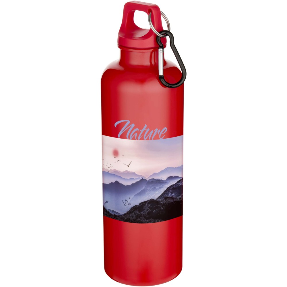 Az RCS tanúsítvánnyal rendelkező RPET-ből készült, tartós, mégis könnyű, 750 ml-es kulacs lehetővé teszi a folyamatos hidratálást. Tökéletes kísérő sportoláshoz, kirándulásokhoz vagy irodai használatra. A szimplafalú Oregon palack csavaros kupakkal rendelkezik, és bőséges felületet kínál bármilyen logó elhelyezésére. A mellékelt karabiner segítségével (mely mászásra nem alkalmas) a kulacs biztonságosan táskához rögzíthető. A termék megfelel az EFSA által jóváhagyott PET újrahasznosítási szabályoknak.