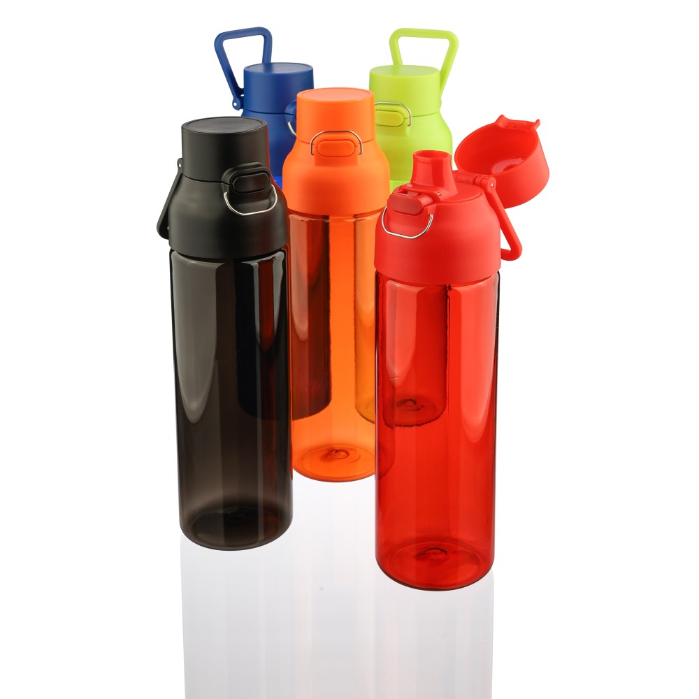 Tritán ivópalack 750 ml-es űrtartalommal, a kupakhoz illő színes palacktesttel. Tartós és könnyű anyagokból (PP) készült, amelyek ellenállnak a nedvességnek, a vegyszereknek és a mindennapi igénybevételnek. Nyomógombos zárral és felső hordozófogantyúval rendelkezik. Mindennapi használatra tervezve munkához, iskolához vagy szabadidős tevékenységekhez.