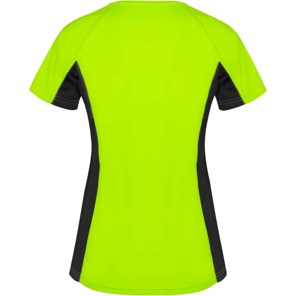 Roly Shanghai rövid ujjú női sportpóló, Fluor Yellow, Black