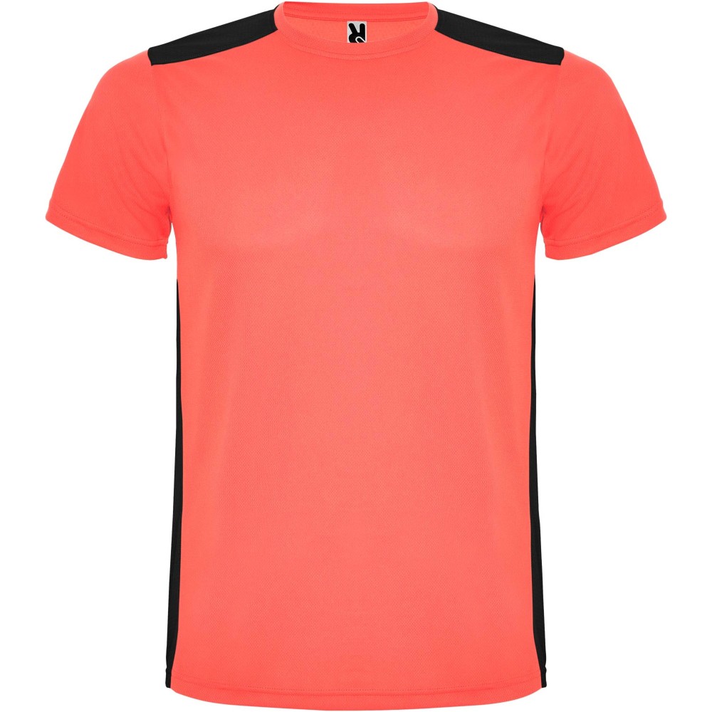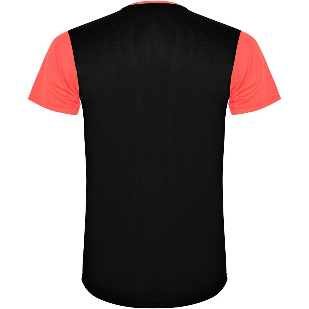 Roly Detroit rövid ujjú uniszex sportpóló, Fluor Coral, Black