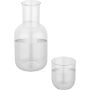 Letisztult megjelenésű, 850 ml-es üvegkancsó hozzáillő, 200 ml-es üvegpohárral. A szett ideális víz, üdítők vagy egyéb italok felszolgálásához. Az elegáns és kompakt kialakításnak köszönhetően esztétikus kiegészítője lehet az étkezőasztalnak vagy az irodai íróasztalnak egyaránt. A termékek kiváló minőségű üvegből készültek a tisztaság és a tartósság érdekében.