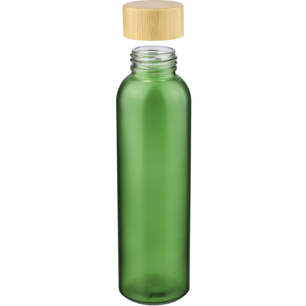 Üvegpalack 500 ml űrtartalommal, matt bevonatú testtel, bambusz csavaros kupak PP belső résszel. Nátrium-kalcium üvegből készült, kizárólag hideg italokhoz használható. Darabonként barna kartondobozba csomagolva.
